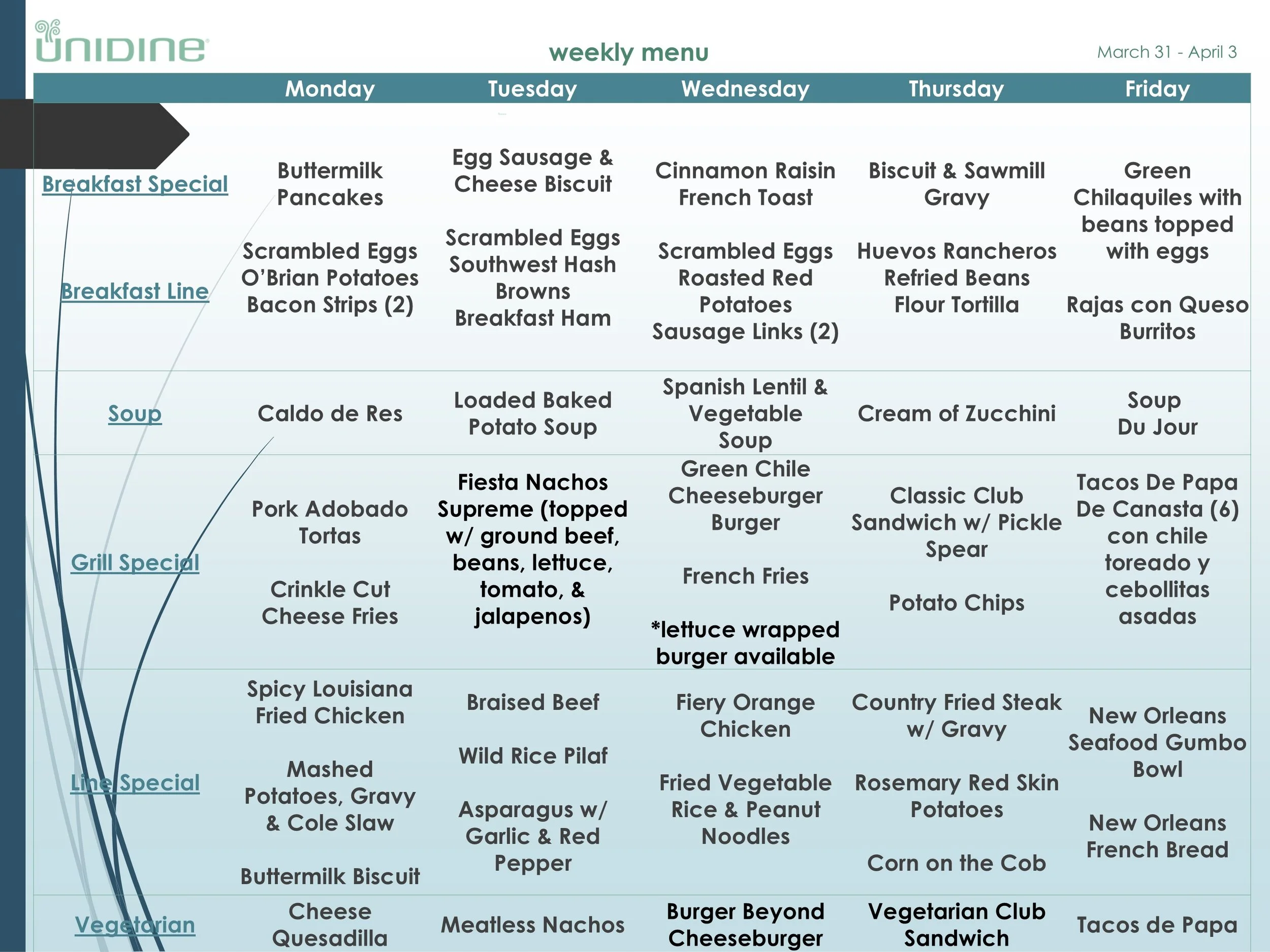 Sample Hospital Menus For Lunch Cafeteria At Lagrange Hospital De