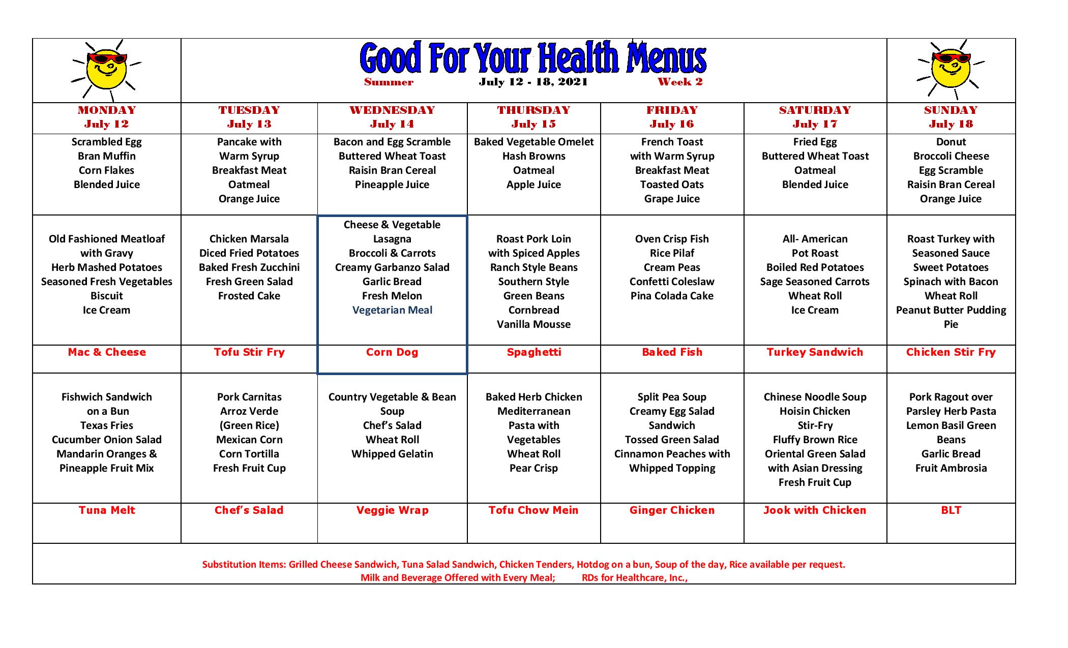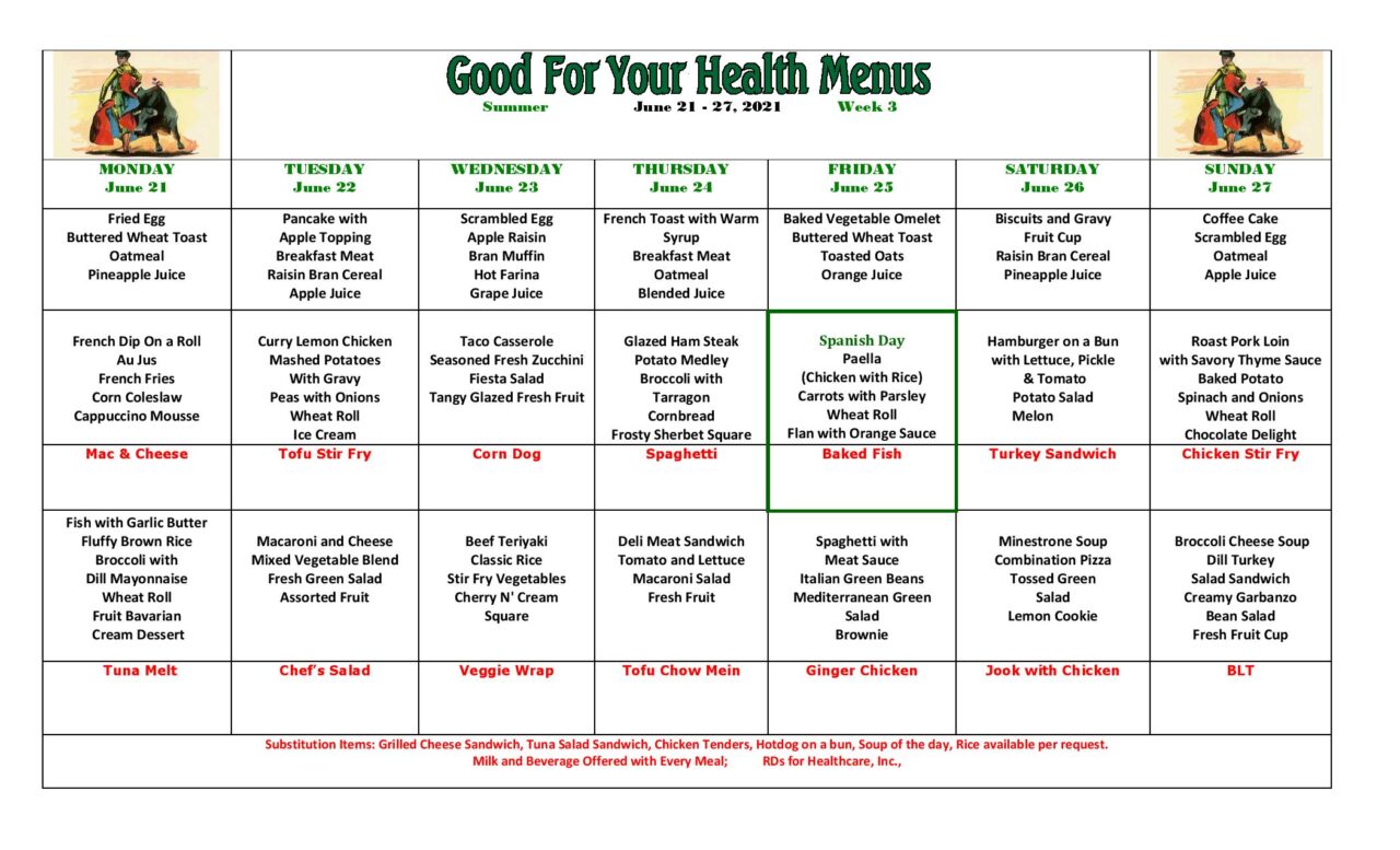 Summer menu ideas for nursing homes | Menu ideas for elderly adults