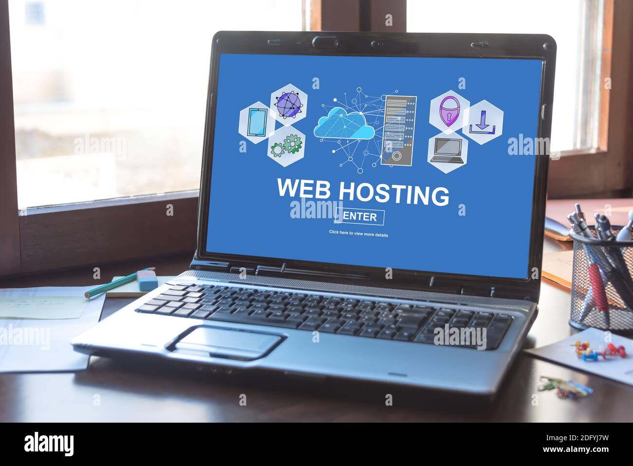Laptop screen displaying a hosting concept Stock Photo - Alamy