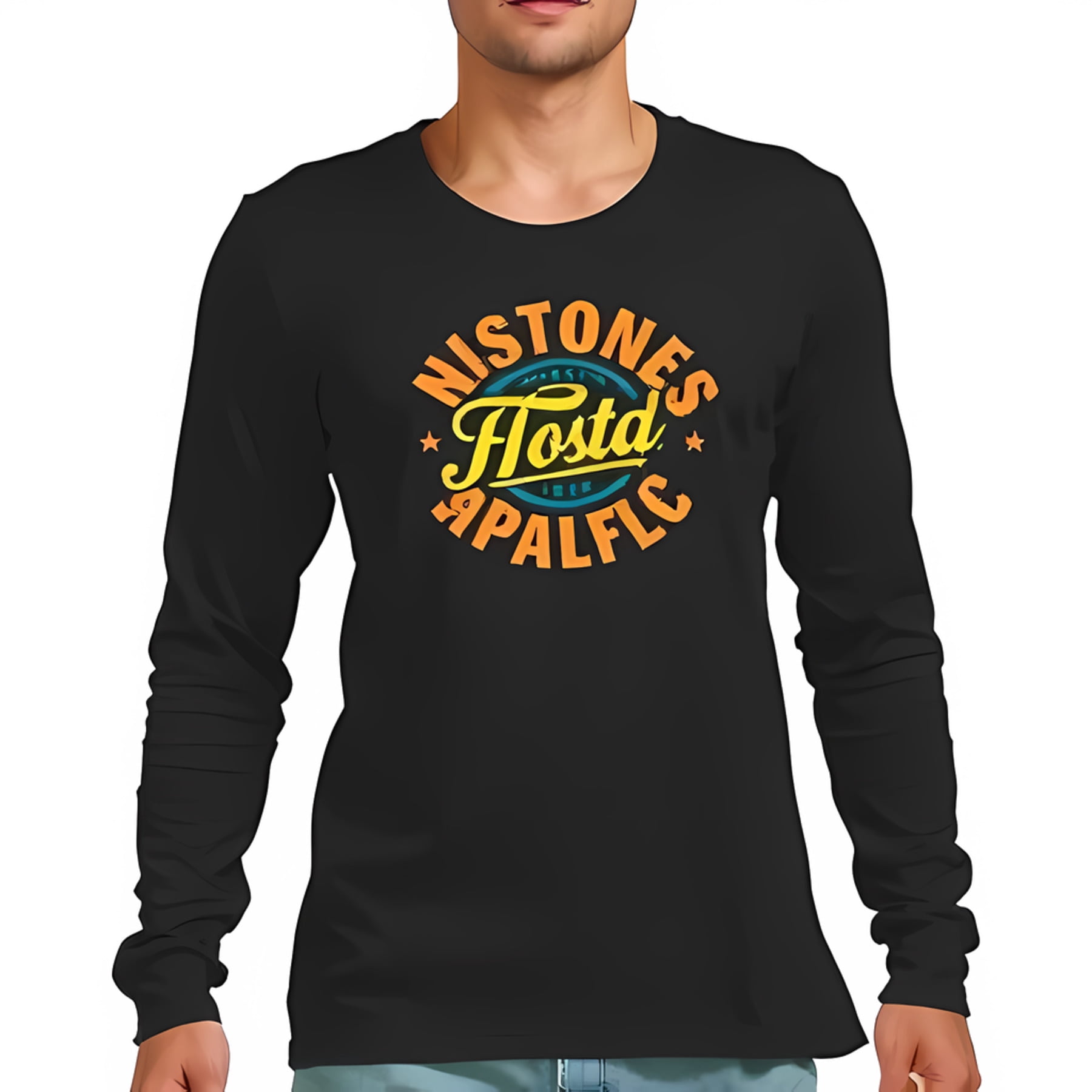 Vintage-Inspired Long Sleeve T-Shirt for Men Black Tee with 'Hostd ...