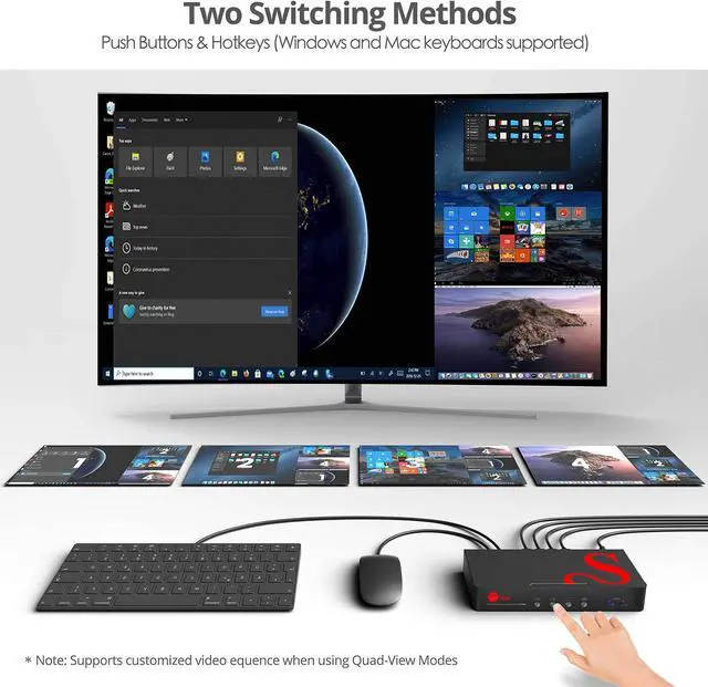 Hotkey 4K 4x1 KVM HDMI Quad Multi-Viewer Display Switch Vedio Wall ...