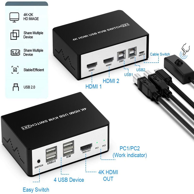 HDMI KVM Switch 2 Ports, with Hotkey Switch, USB C... – Grandado