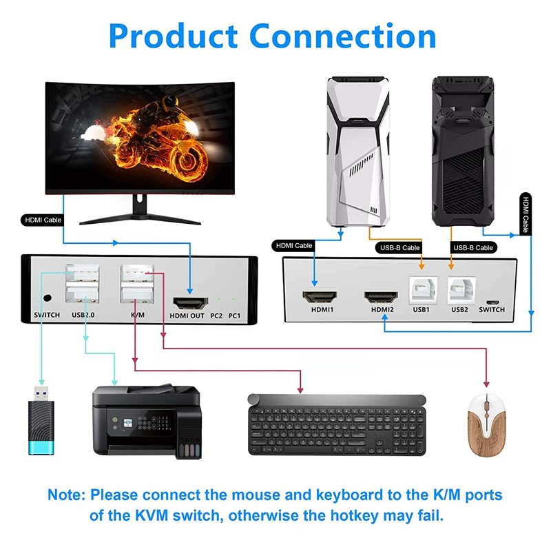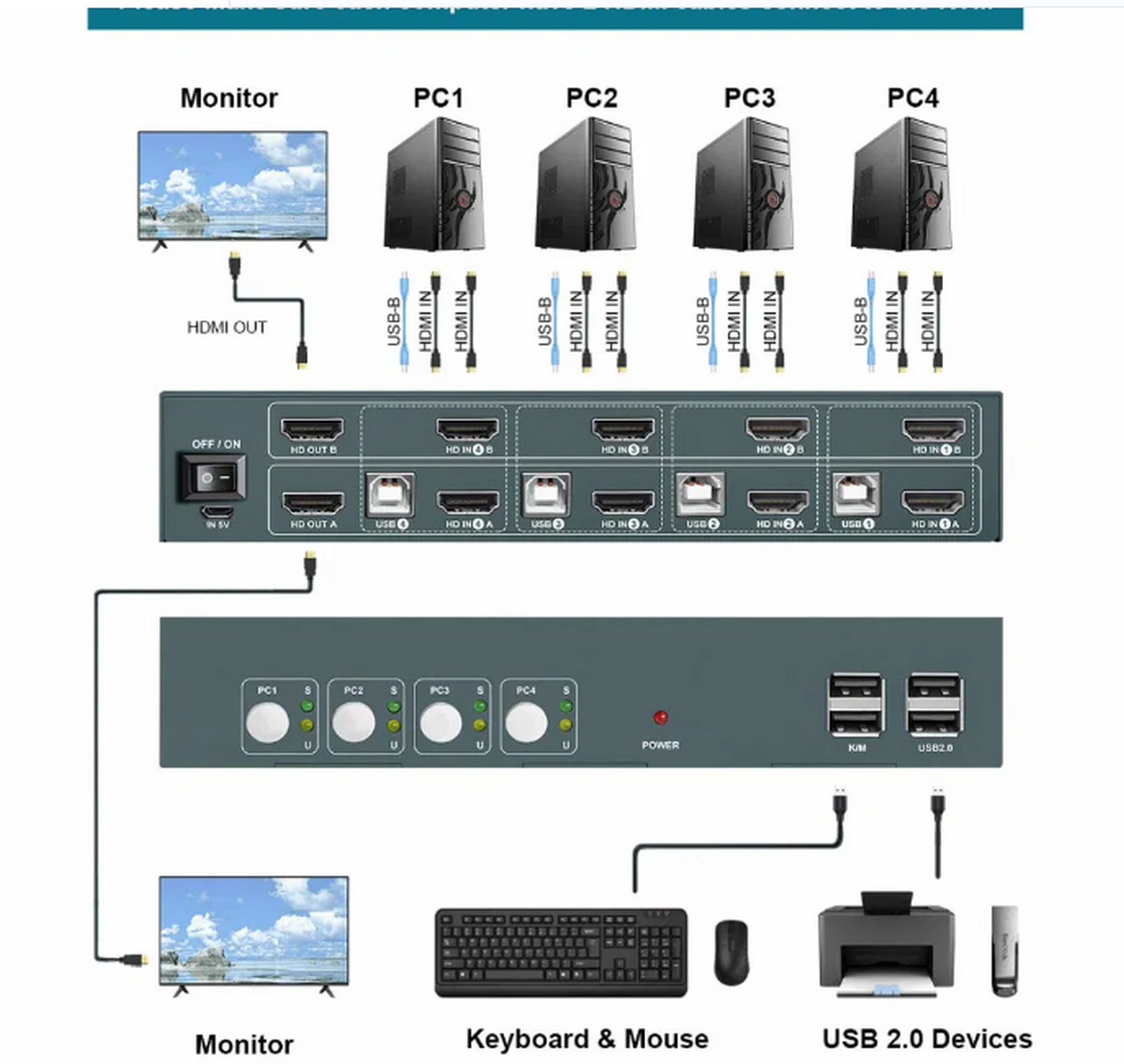 HDMI USB KVM SWITCH Support Hotkey Switching,4K/60... – Grandado