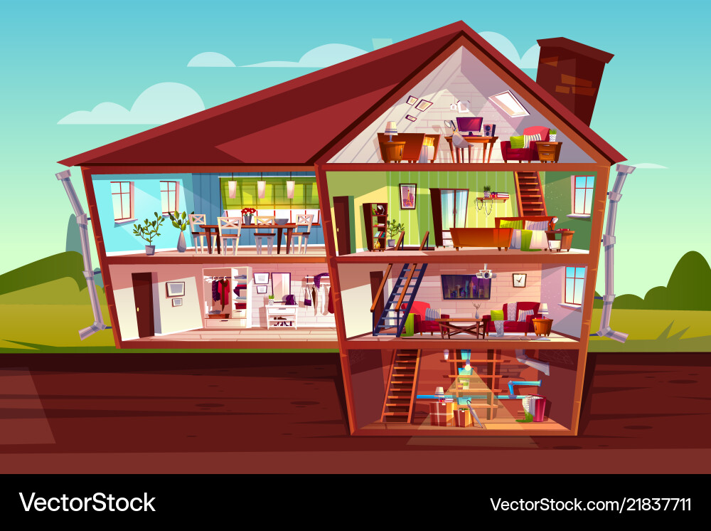House Interior Cartoon House Cross Section Stock Illustration ...