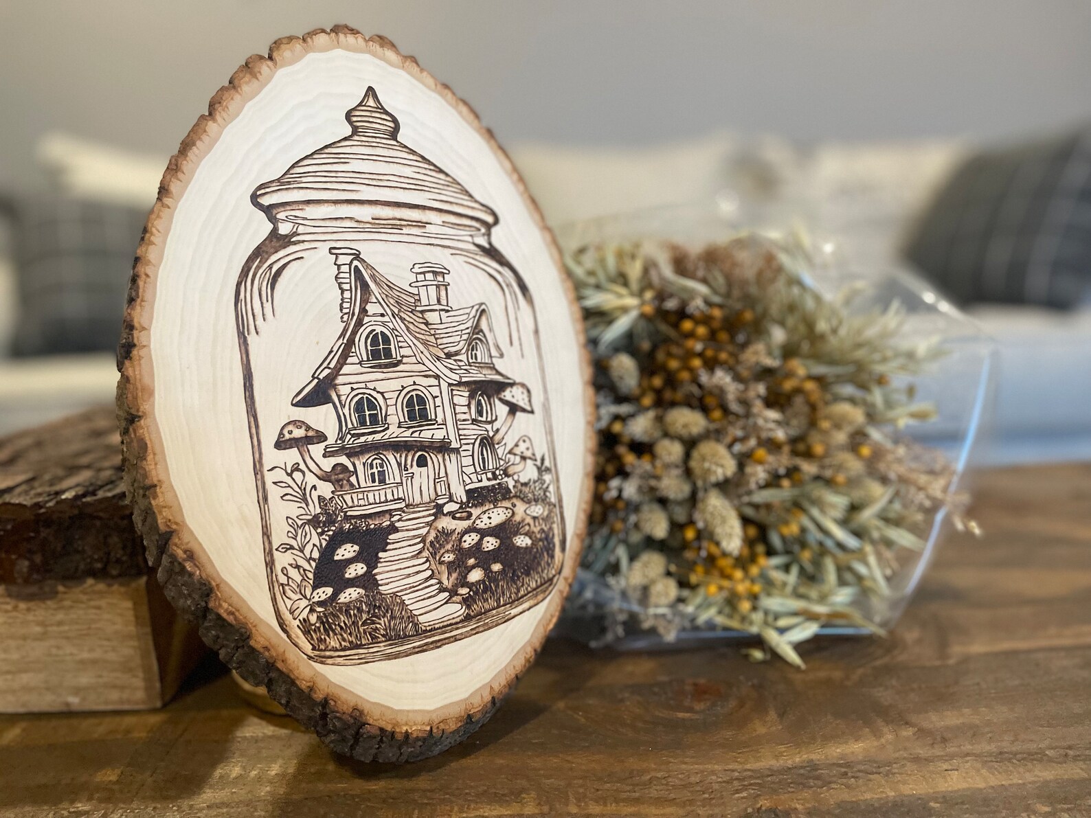 Handcrafted Wood Burning Pyrography Art - Fairy House in a Jar on ...