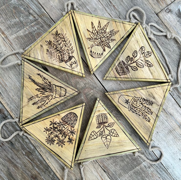 Wooden bunting with pyrography drawn house plan... - Folksy