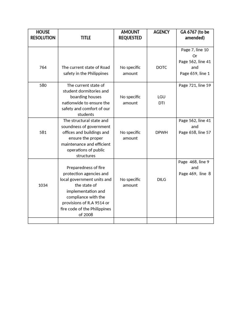 Table of House Resolution | PDF