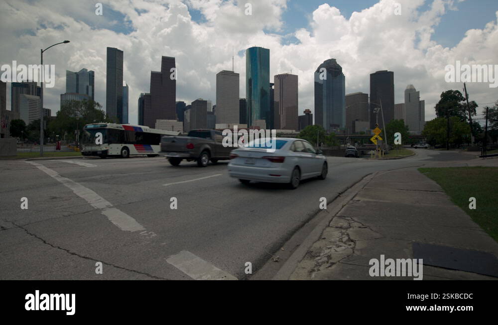 Houston, Texas Skyline Seen from Ground Level at Intersection Stock ...