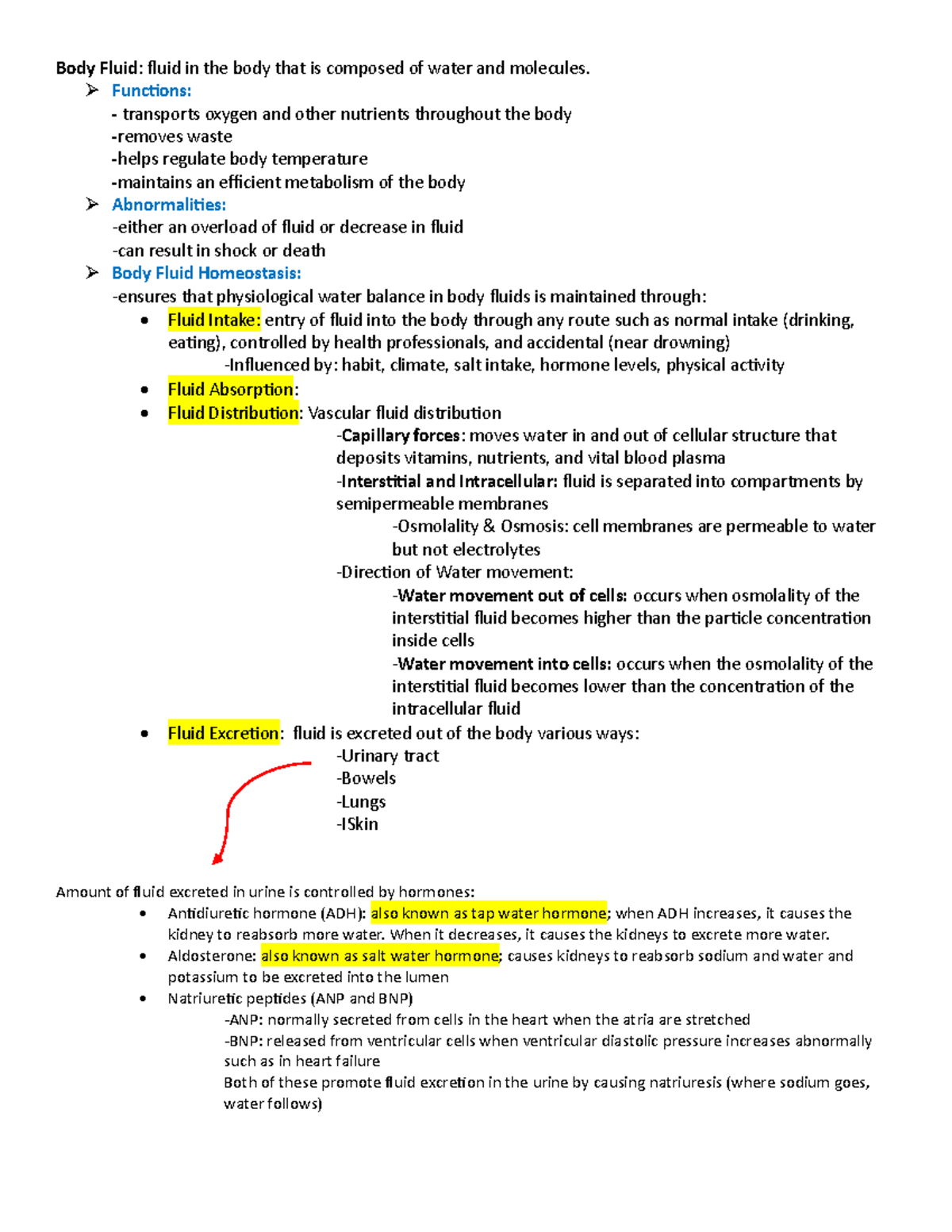Concept map 2 - Body Fluid: fluid in the body that is composed of water ...