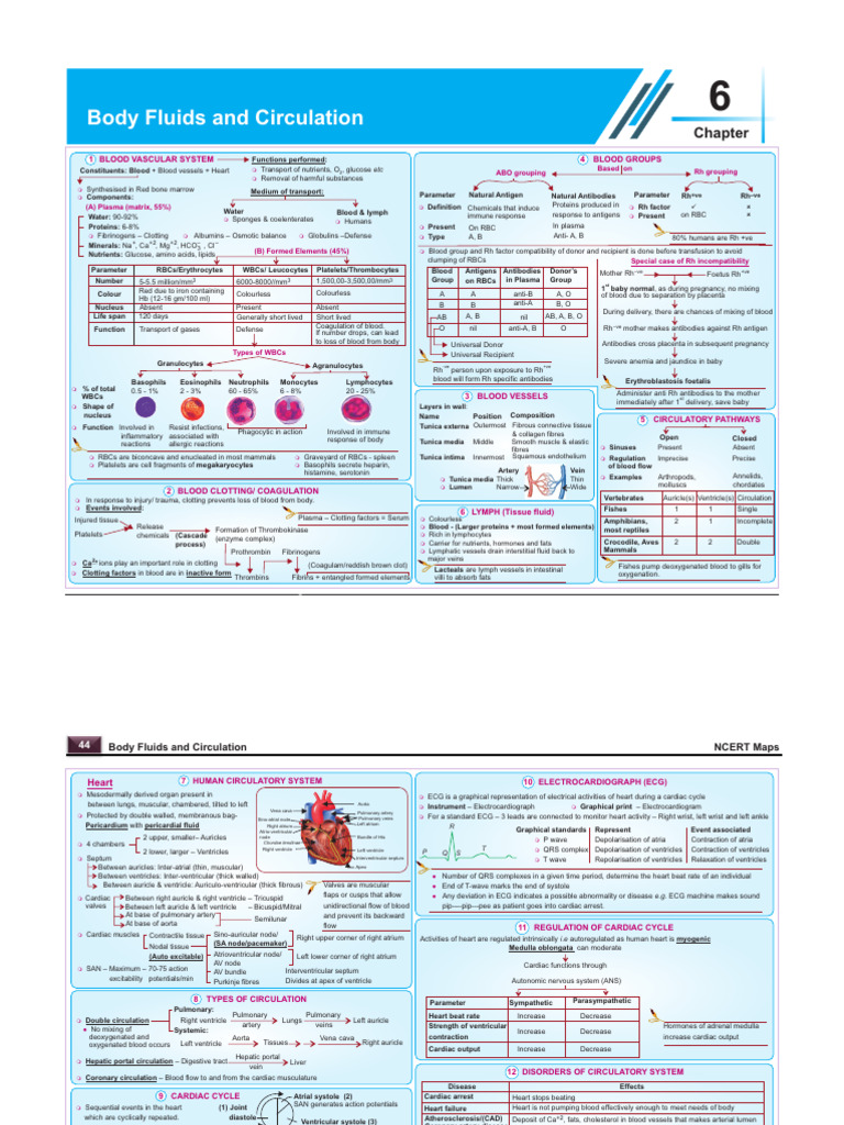 Mind Map: Body Fluids and Circulation | Biology Class 11 - NEET PDF ...