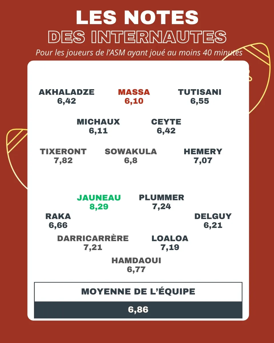 Dans son sillage, toute l'équipe de l'ASM est très bien notée par des ...