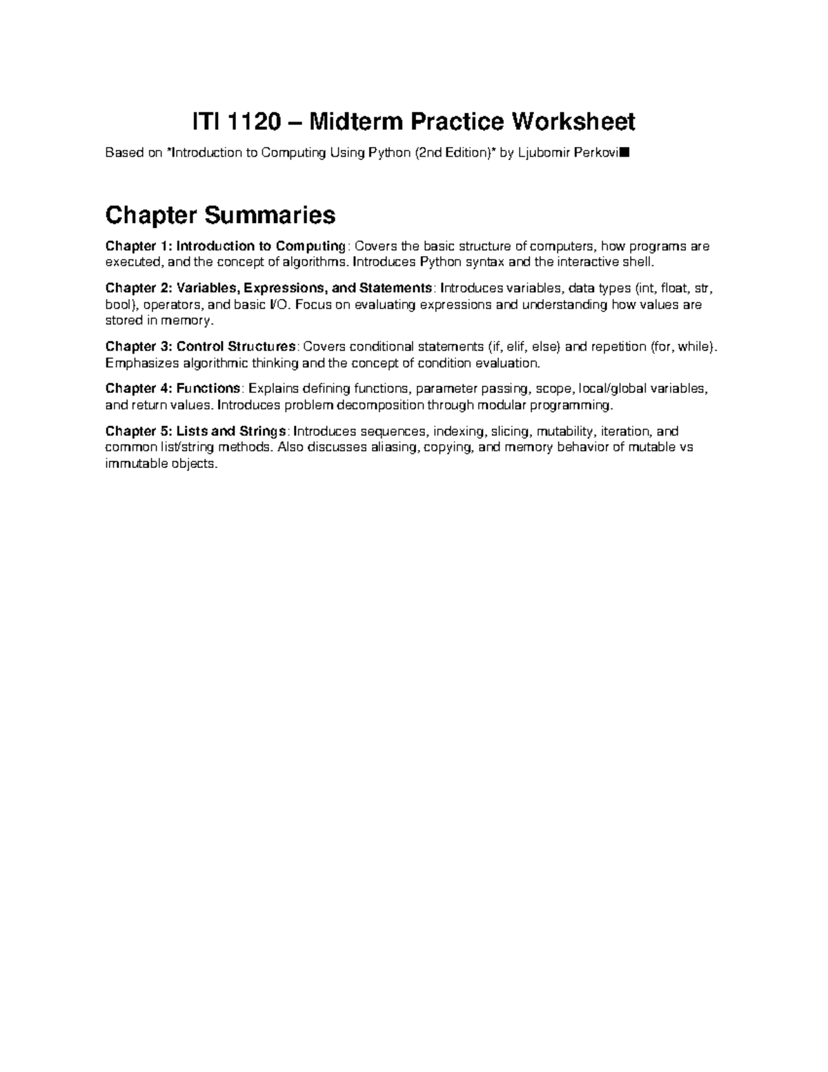 ITI 1120 Midterm Practice: Python Computing Concepts & Exercises - Studocu