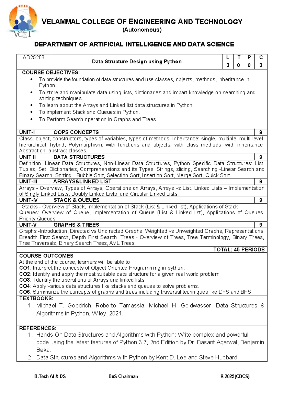 AD25203 Data Structure Design Using Python - Theory Notes - Studocu