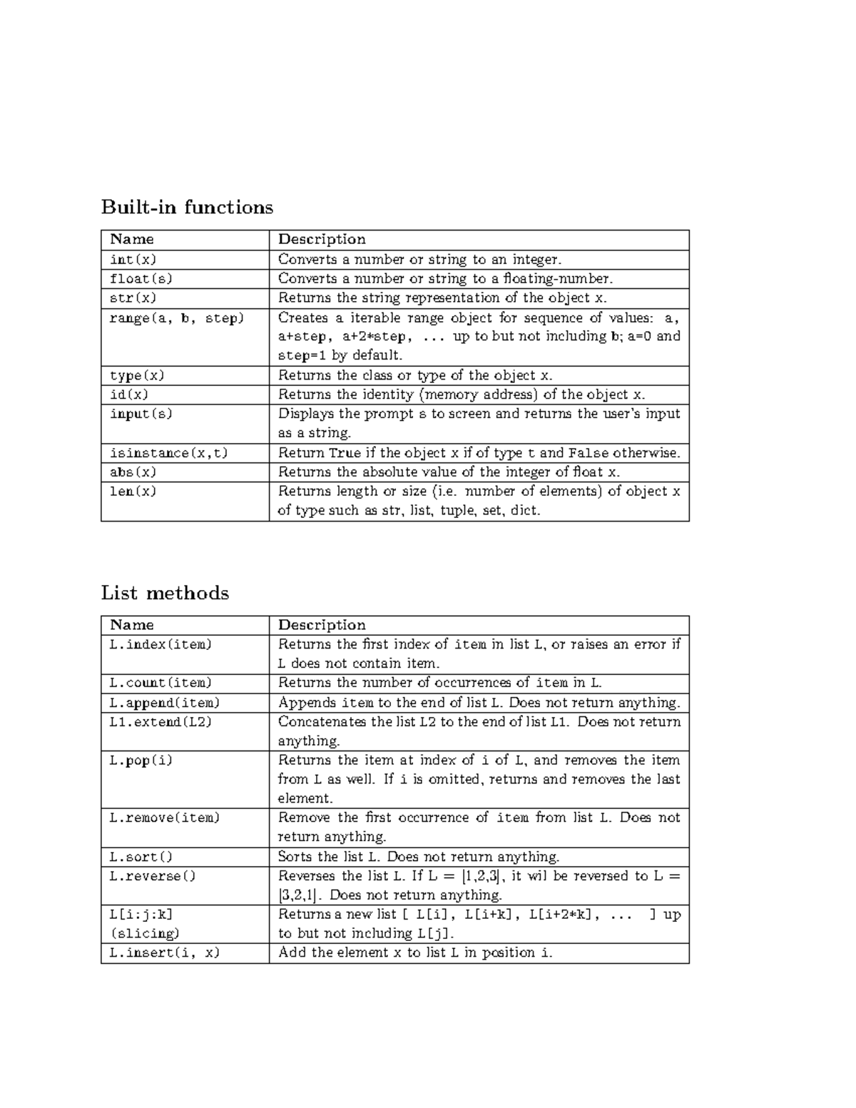 Midterm 2 Helper Sheet: Python Functions & List Methods - Studocu