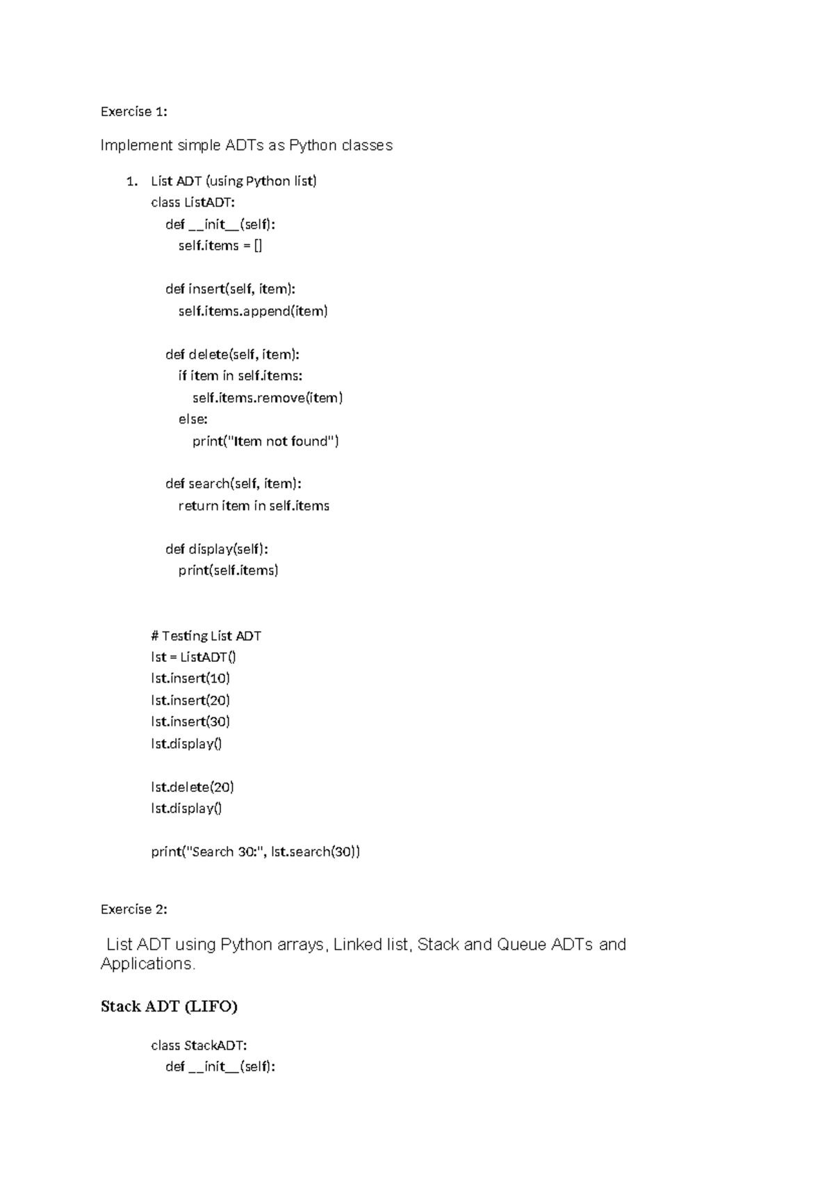 DS Ex(1-6) Lab Manual: Implementing ADTs & Algorithms in Python - Studocu