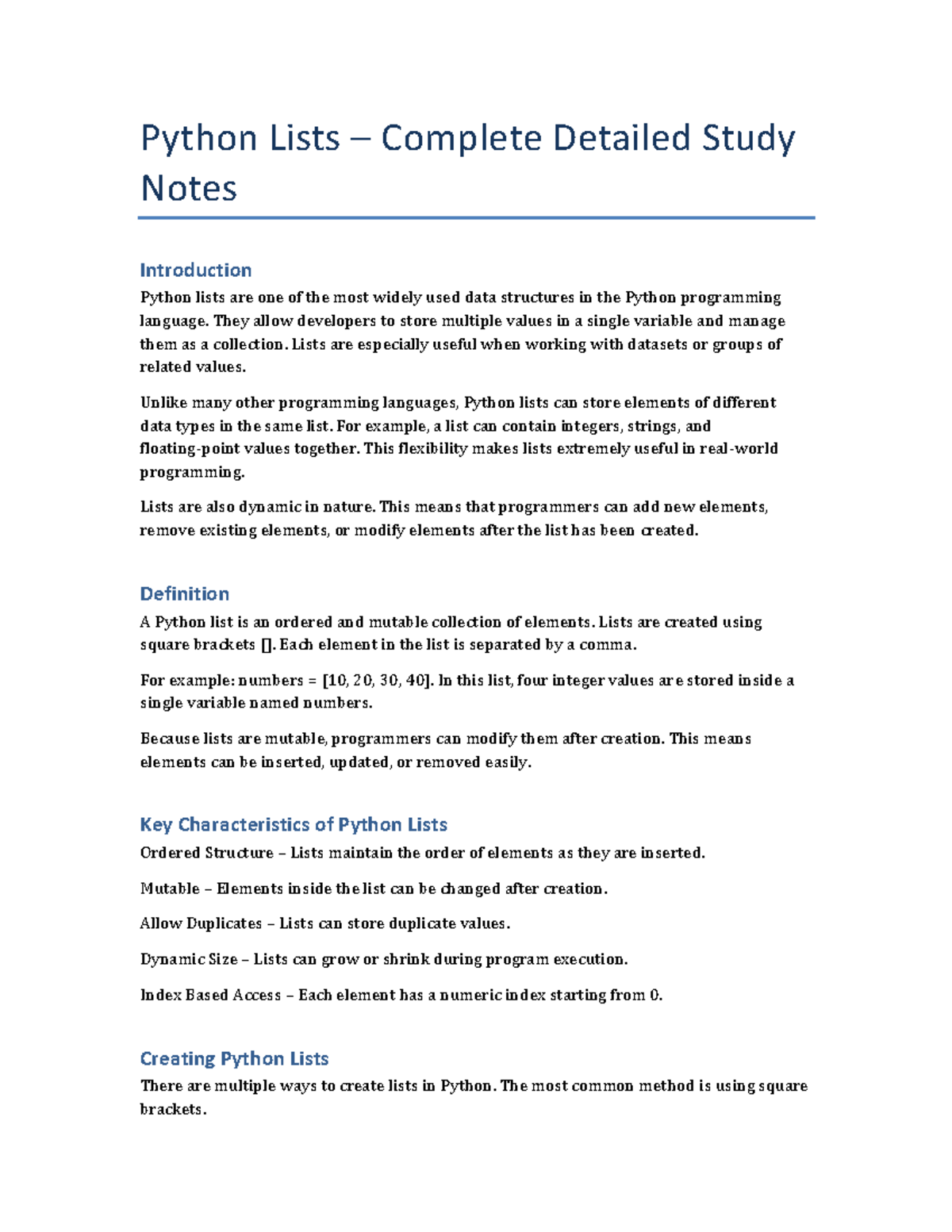 Python Lists (CS101) – Comprehensive Study Notes for Beginners - Studocu