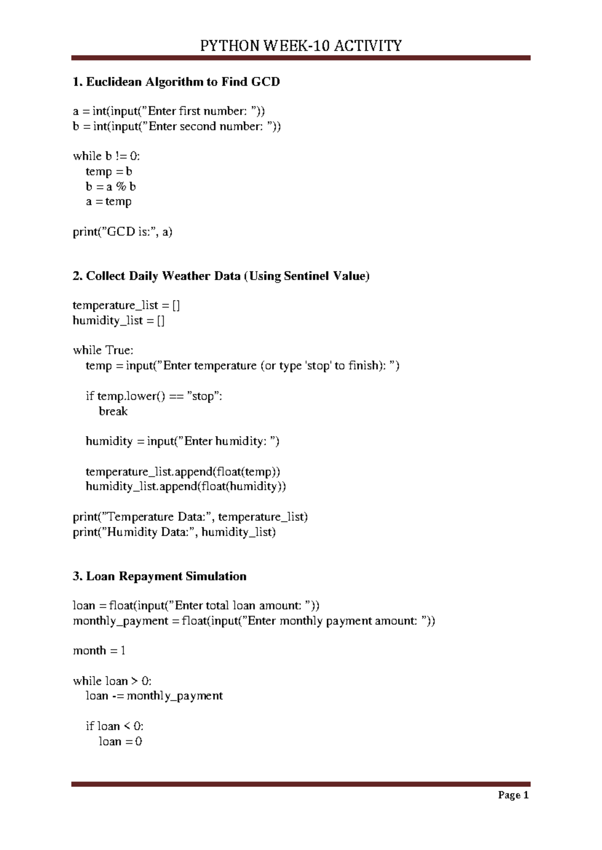 Python Activity Week 10: GCD, Weather Data, Loan Simulation & More ...