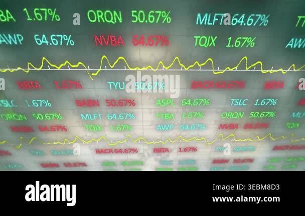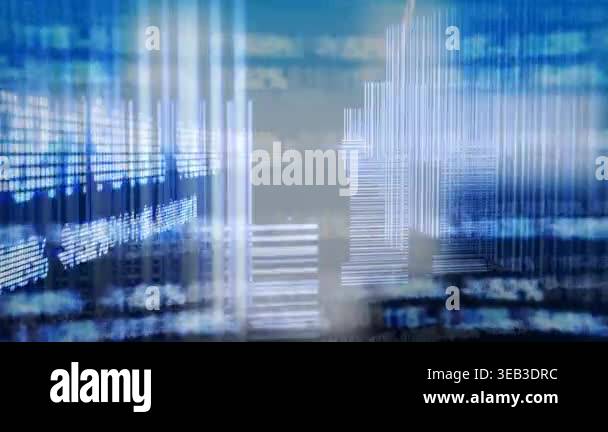 Animation of data processing over stock market and binary coding ...
