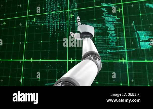 Animation of data processing and binary coding on green background ...