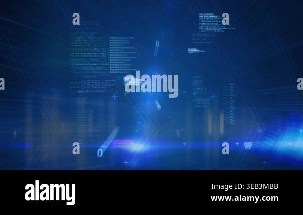 Animation of lights, binary code and padlock over servers. global ...