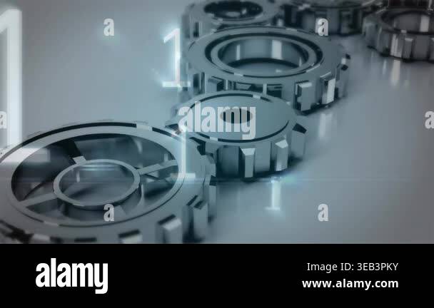 Animation of binary coding over cogs on white backgorund. global ...