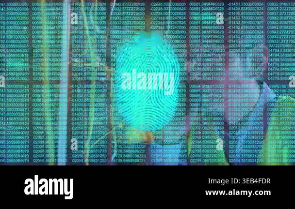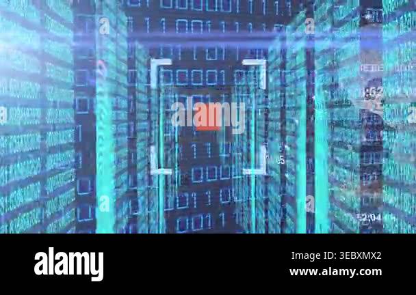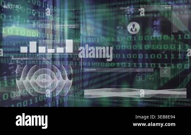 Animation of binary code and diverse data processing on digital screen ...