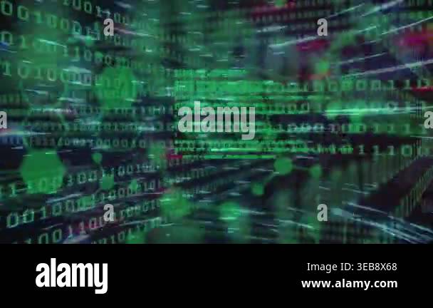 Processing data, digital network connections animated over binary code ...