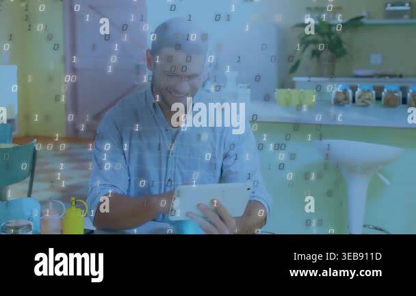 Animation of mathematical binary coding over schoolboy using tablet ...