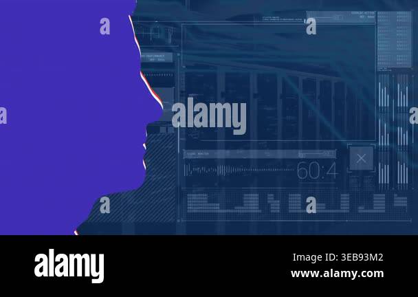 Animation of data processing, binary code and human silhouette over ...