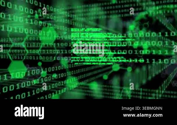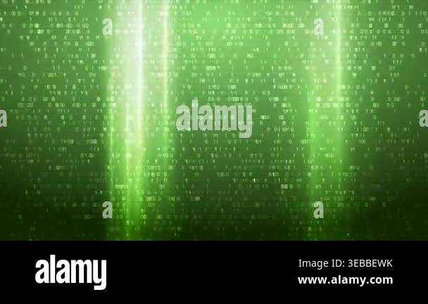 Animation of binary coding and data processing on green background ...