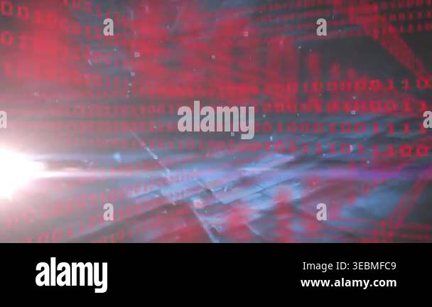 Animation of binary code and lights on black background. computers ...