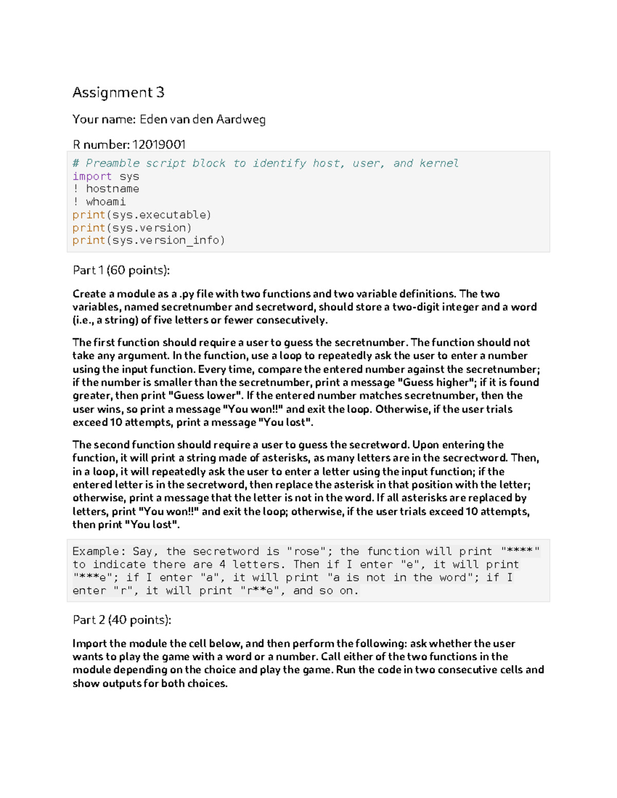 ENGR1330 - Assignment 3: Python Guessing Game Implementation - Studocu