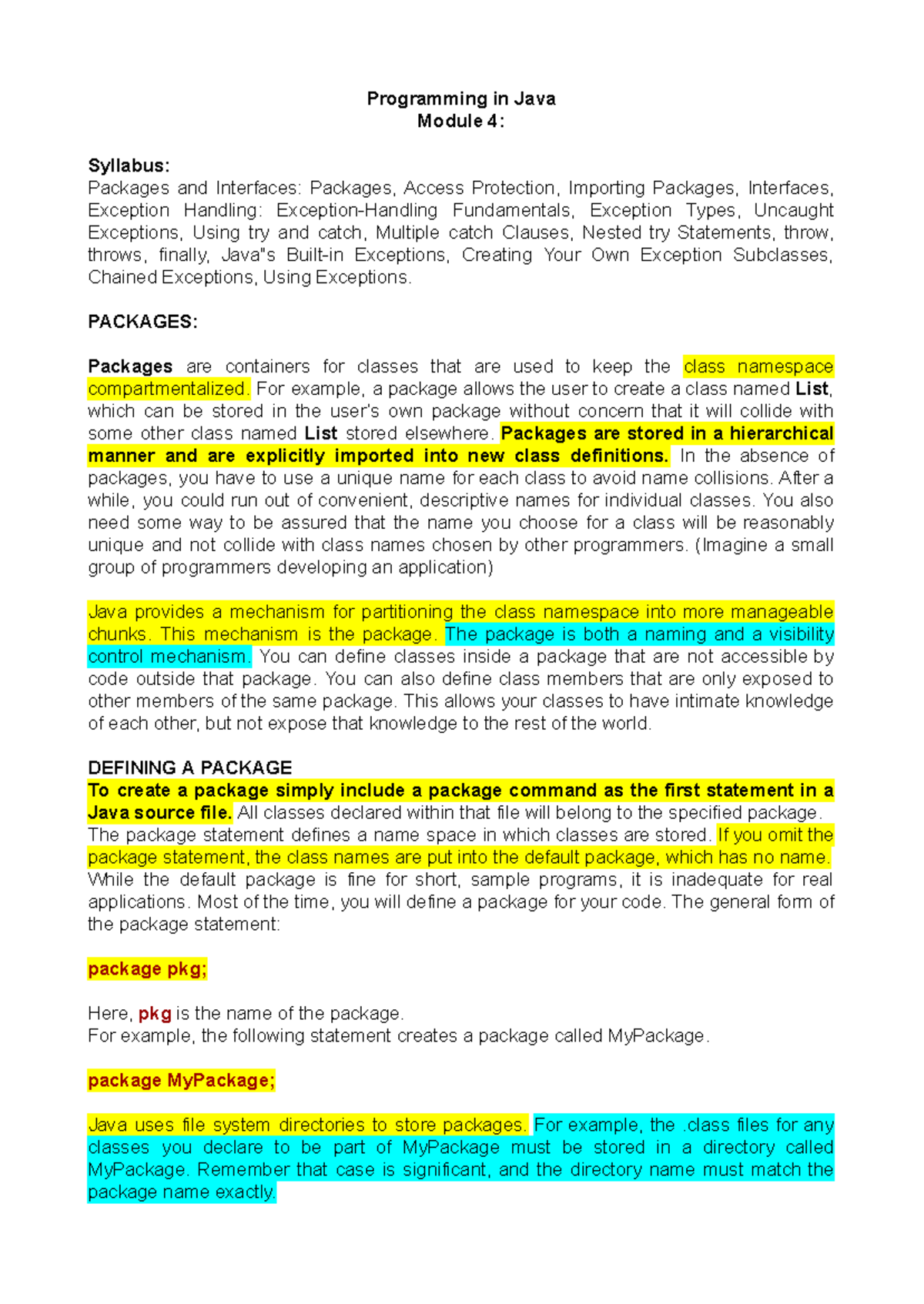 Java Programming Module 4: Syllabus on Packages & Interfaces - Studocu