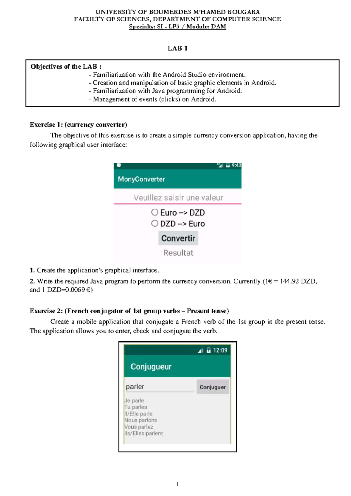 TP 1 - Introduction to Android Development and Java Programming - Studocu