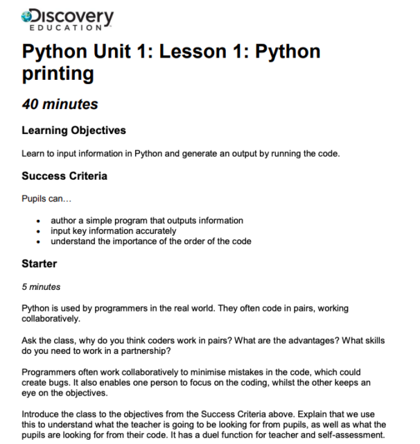 Discovery Education Coding - welcome to Python Coding (Level 6 ...
