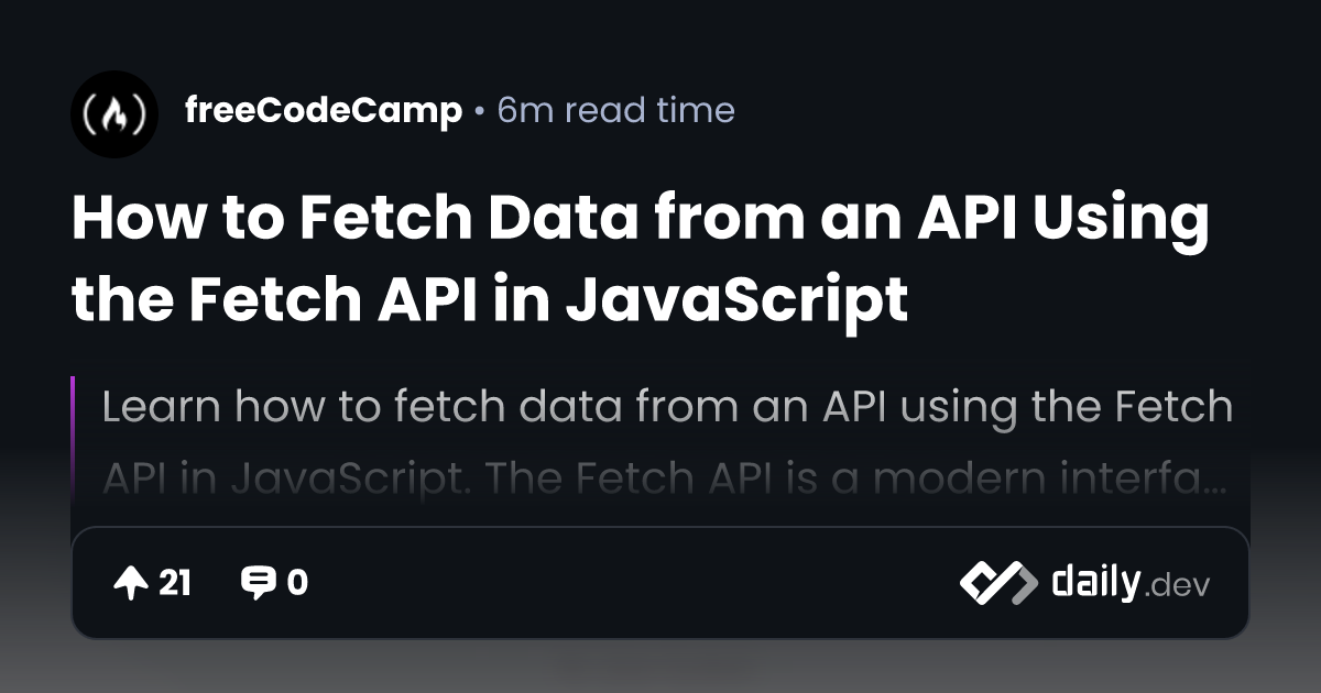 How to Fetch Data from an API Using the Fetch API in JavaScript | daily.dev