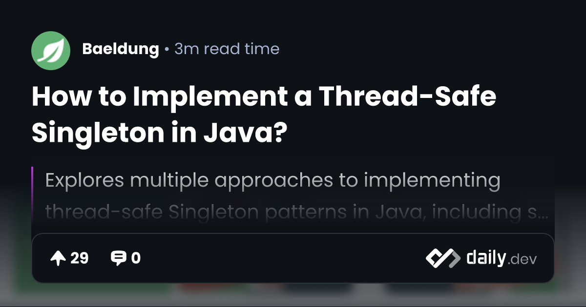 How to Implement a Thread-Safe Singleton in Java? | daily.dev