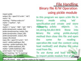 File Handling in Python: Day 9 Read Write and Append Using Pickle ...