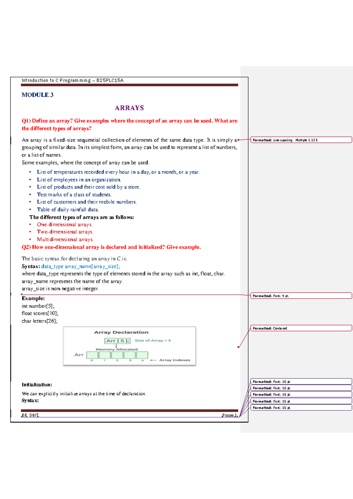 C Programming B25PLC15A Module 3: Arrays and Strings Overview - Studocu