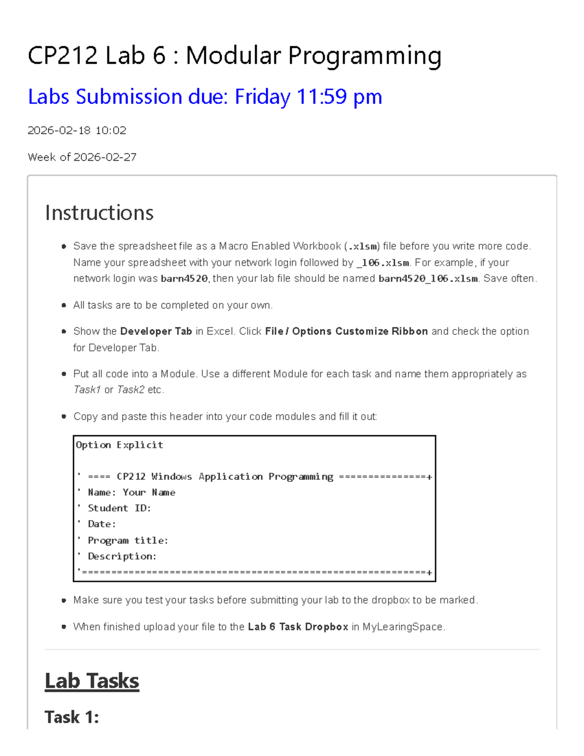 CP212 Lab 6: Modular Programming Tasks and Submission Guide - Studocu
