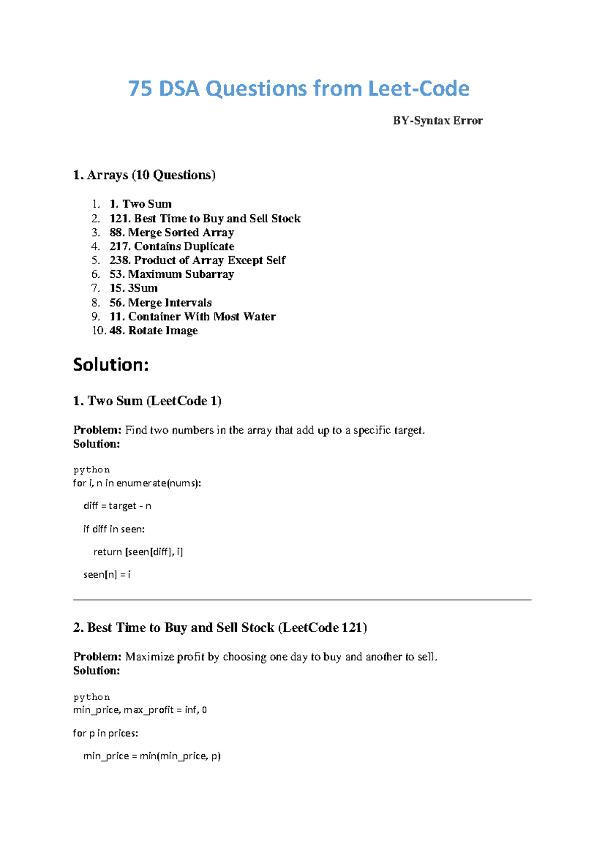 75 DSA Questions from LeetCode: Arrays, Strings, Linked Lists & More ...