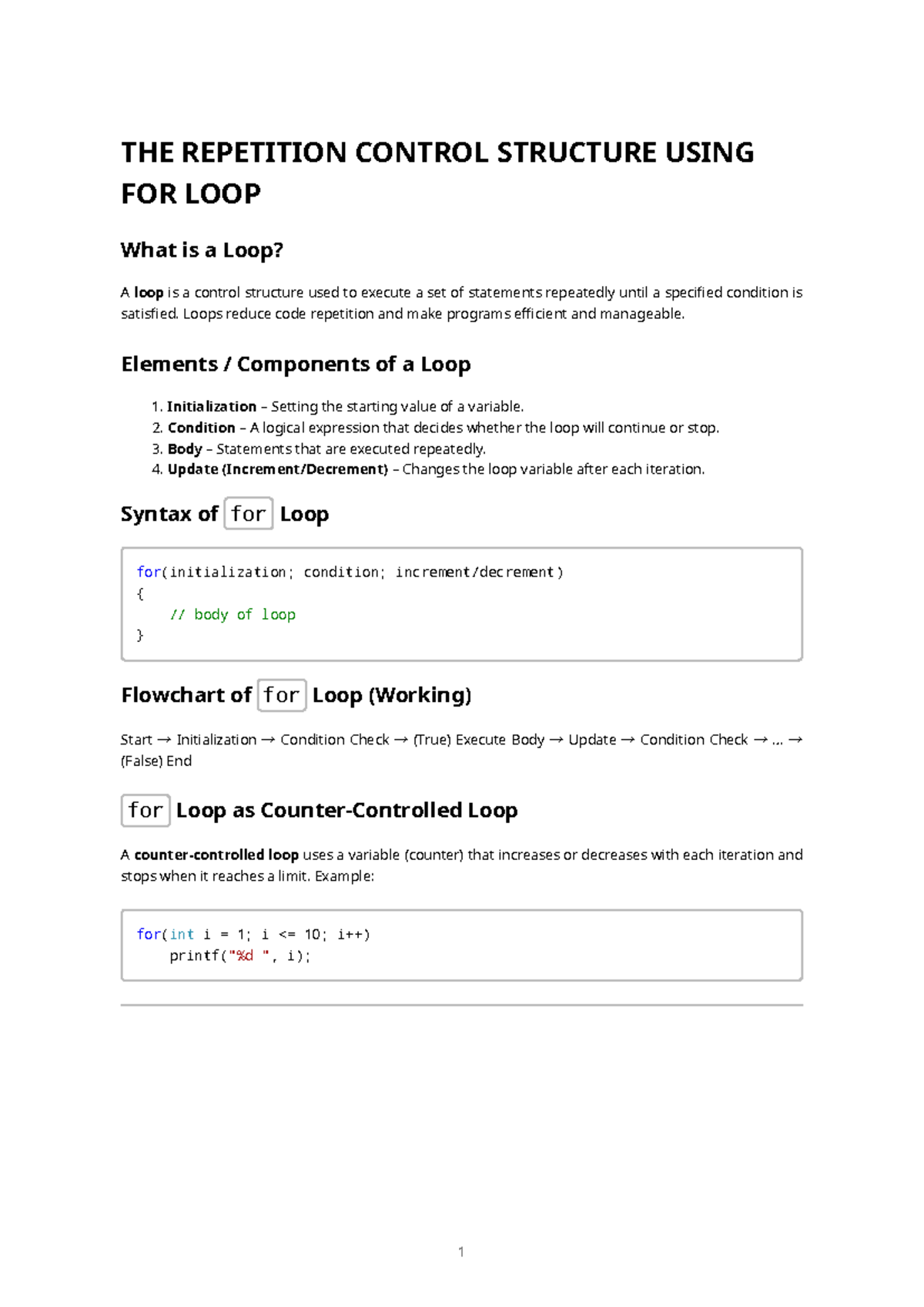 Programming Fundamentals (CS101) – Detailed Notes on Loops, Functions ...