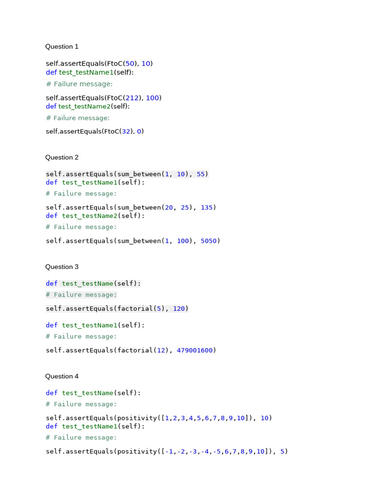 Python Function Assessment Test Cases | PDF