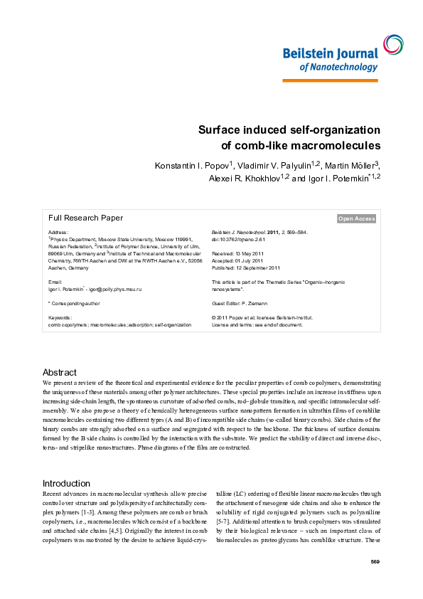 (PDF) Surface induced self-organization of comb-like macromolecules