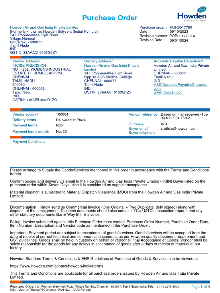 Howden India Purchase Order POR0017780 | PDF | Invoice | Economies