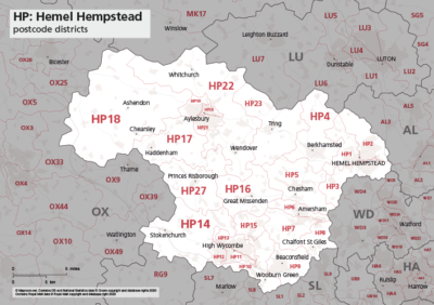 Map of HP postcode districts – Hemel Hempstead – Maproom