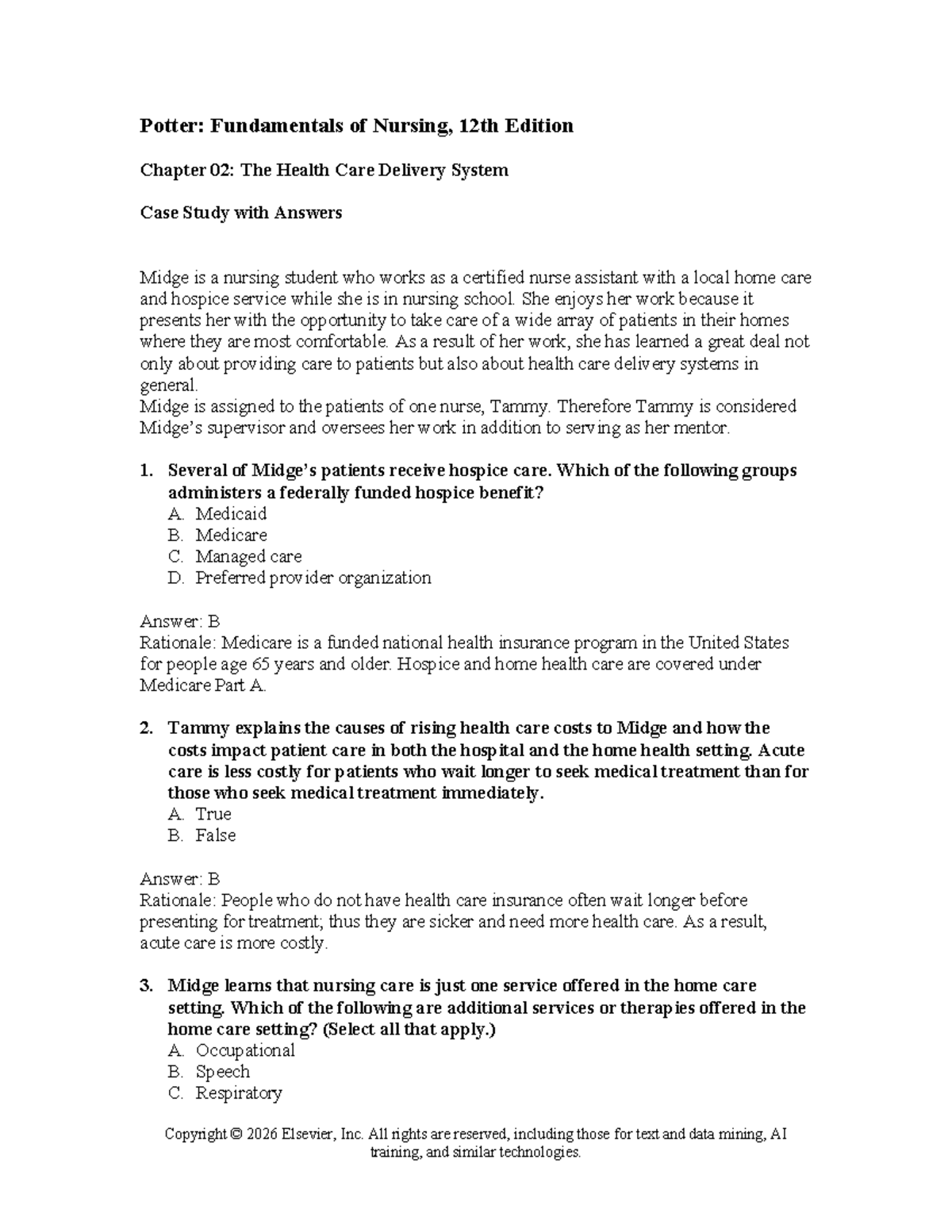 Potter: Nursing Fundamentals 12th Ed. Ch 02 Case Study & Answers - Studocu