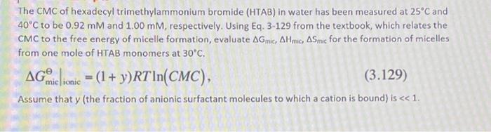Solved The CMC of hexadecyl trimethylammonium bromide ( HTAB | Chegg.com