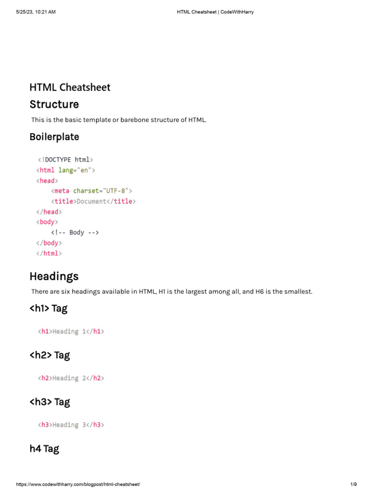 HTML Cheatsheet - CodeWithHarry | PDF | Html | Hyperlink