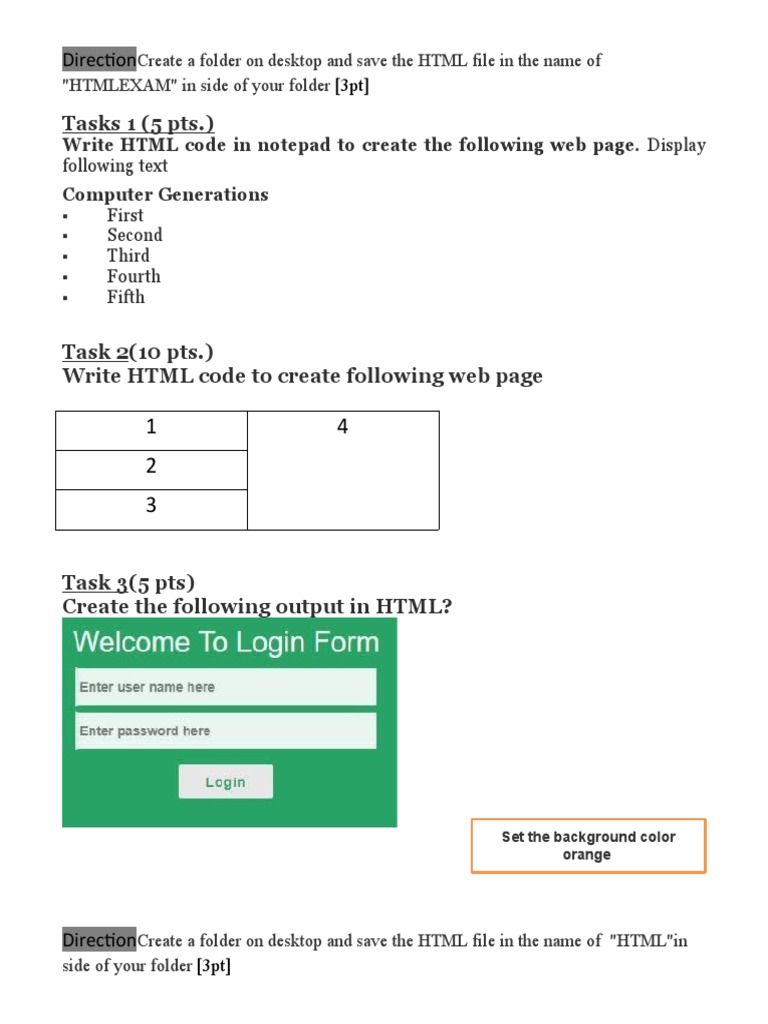 HTML Exercises - TUTORIAL WORK! - HTML Exercises Write HTML code to ...